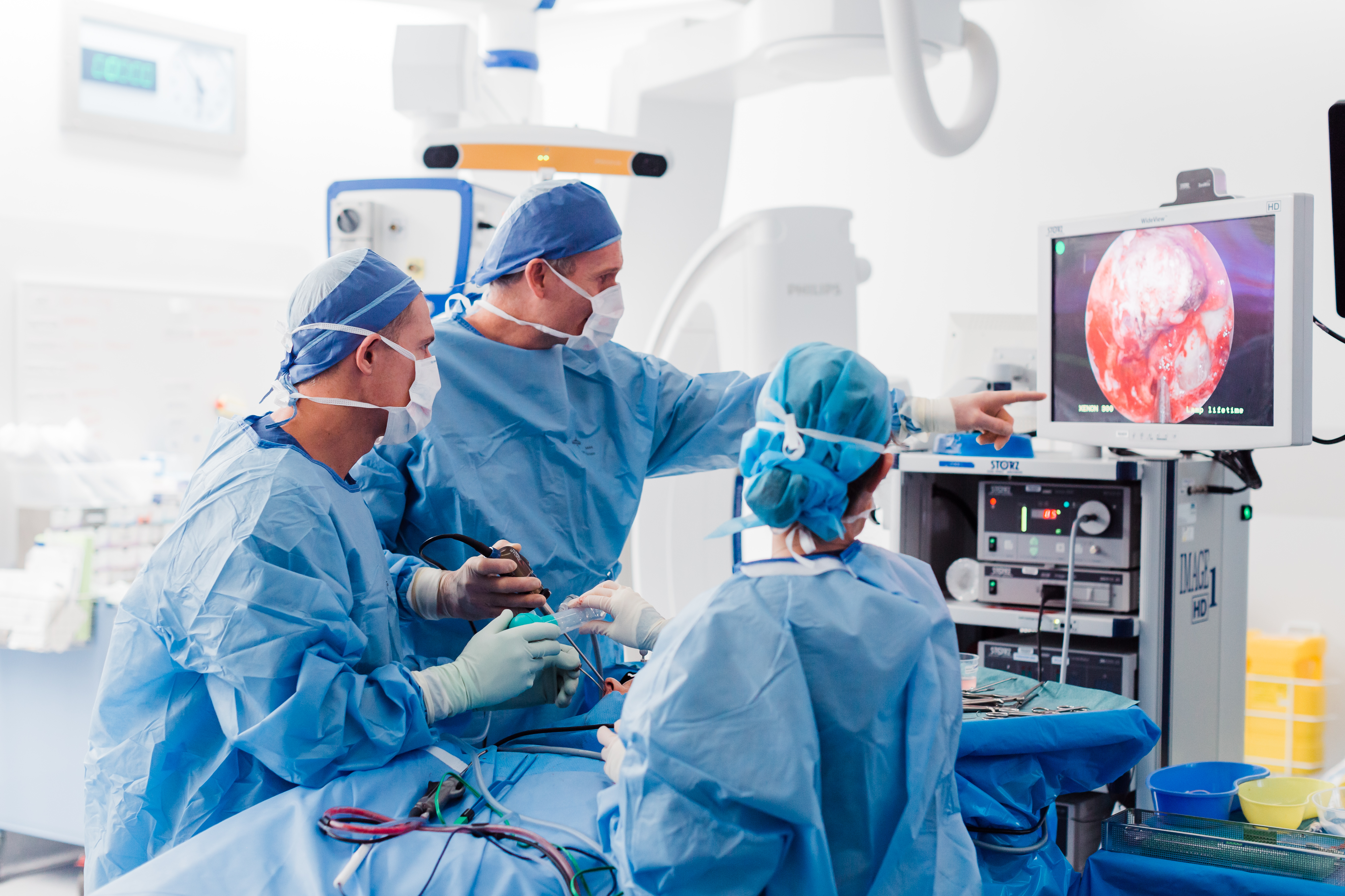 Endoscopic pituitary surgery is done with an endoscope. An endoscope is a thin, rigid tube that has a microscope, light, and camera built into it, and it’s usually inserted through the nose. The camera allows us to watch a magnified version of your tumour whilst we resect it from the surrounding structures.